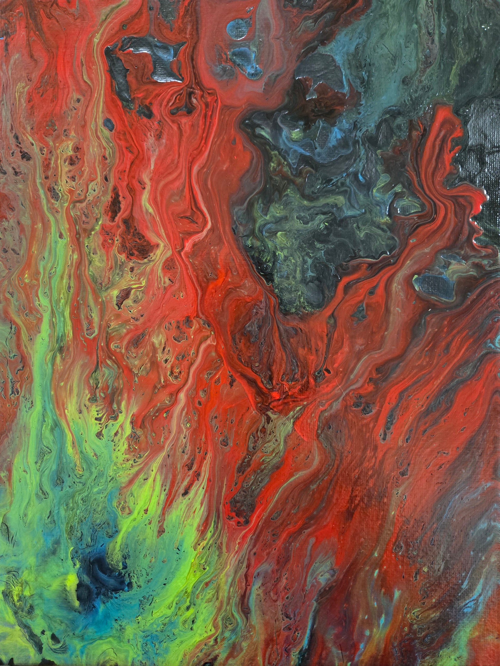 "Halley's Comment"- Original 9" x 12" abstract acrylic painting on canvas. Each piece is a one-of-a-kind composition that blends fluid form and vibrant energy. Ready to display or frame, every painting adds a bold contemporary accent to any space.